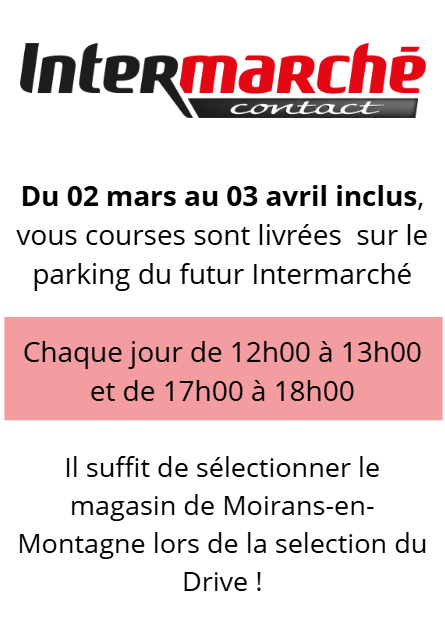 Du 02 mars au 03 avril inclus, vous courses sont livrées sur le parking du futur Intermarché