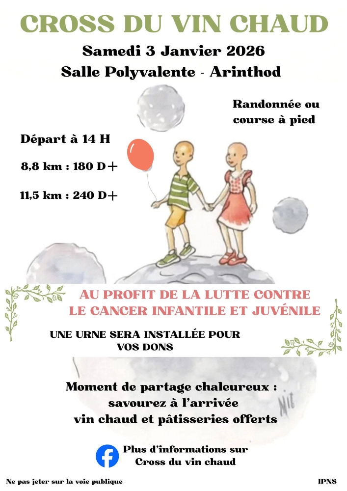 FidĂšle Ă la tradition, on se retrouve le samedi 3 janvier 2026 Ă Arinthod pour un moment sportif, convivial et solidaire au profit de la lutte contre le cancer infantile et juvĂ©nile. đÂ