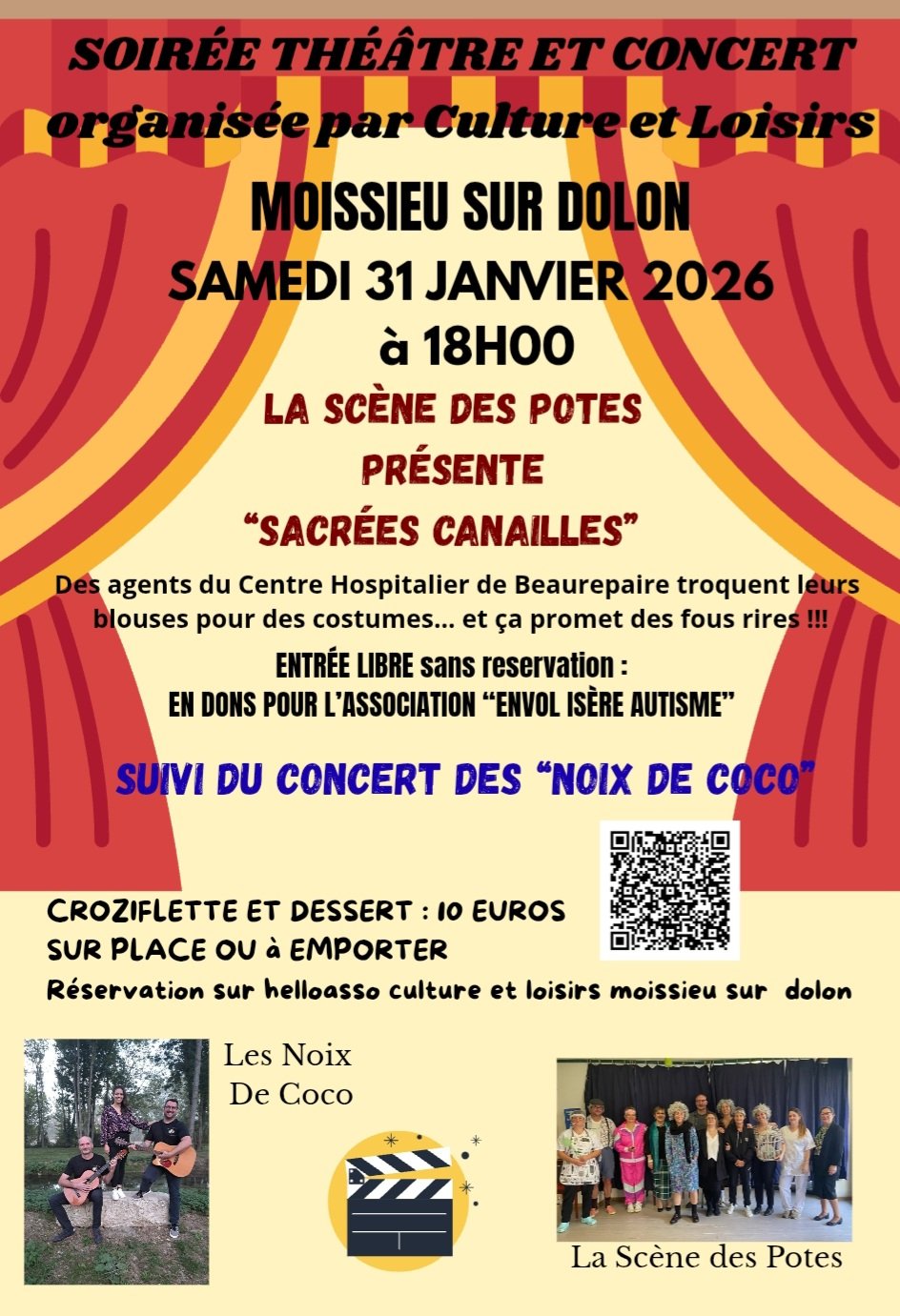 Le repas ert à réserver sur Helloasso ( dans votre moteur de recherche sur internet vous tapez : helloasso culture et loisirs moissieu sur colon ou vous flashez le QR code )