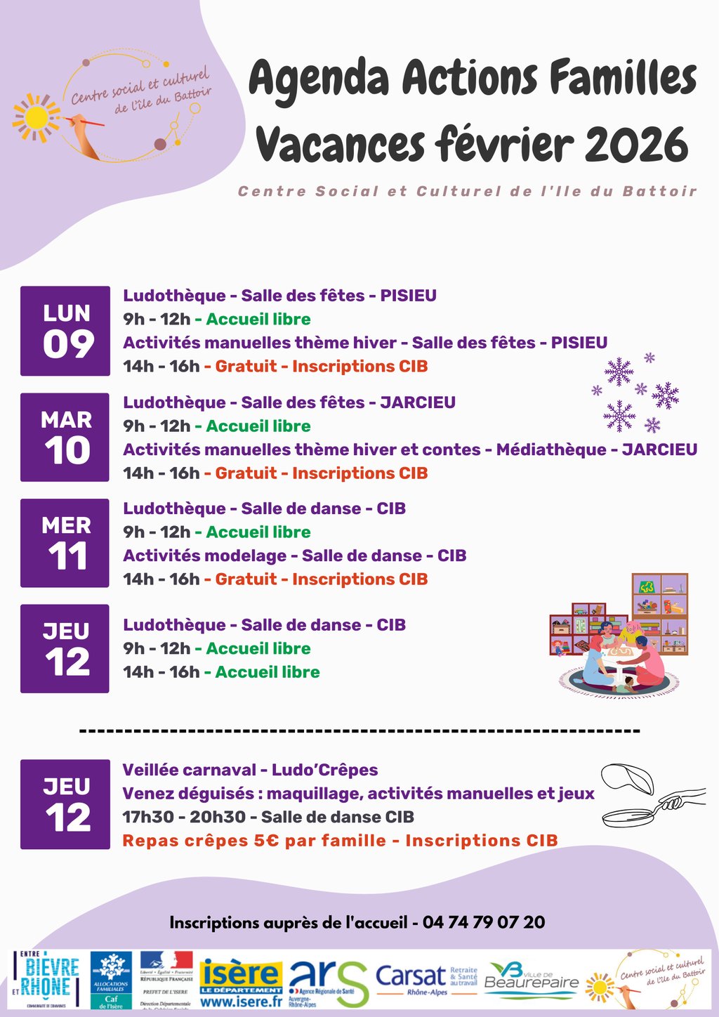 gratuit sauf pour le ludo'crêpes au tarif de 5€ par famille