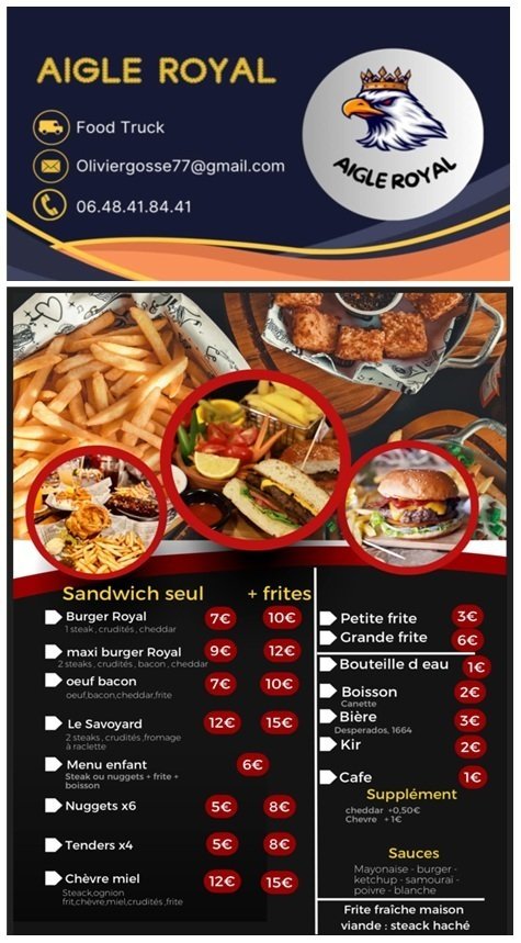 Il est à noter qu'un foodtruck 🍔🍟🥪 " AIGLE ROYAL" 🍔🍟🥪 est présent sur notre territoire communal tous les jeudis.