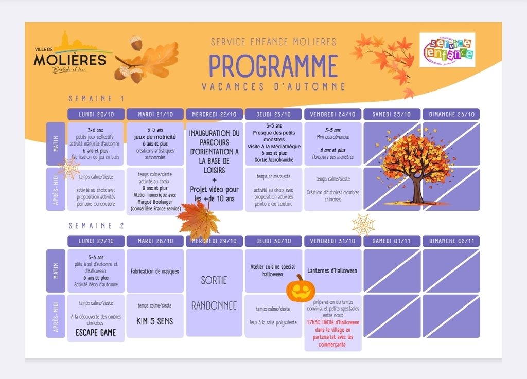 PROGRAMME DES VACANCES D'AUTOMNE À L'ALSH