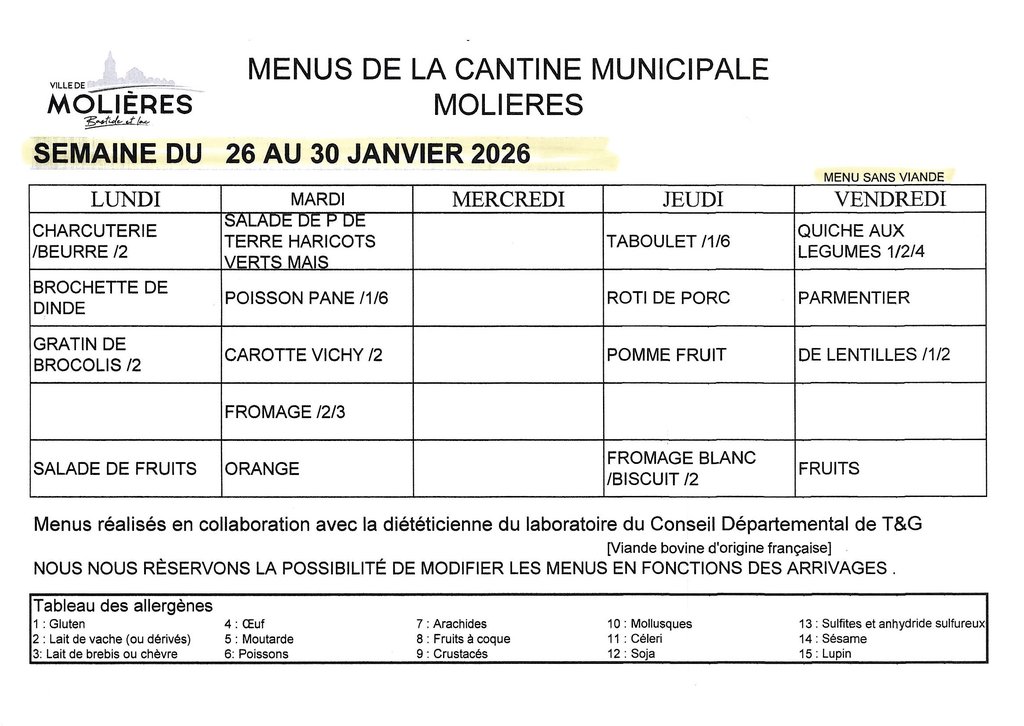 MENUS DE LA CANTINE DU 26 AU 30 JANVIER 2026