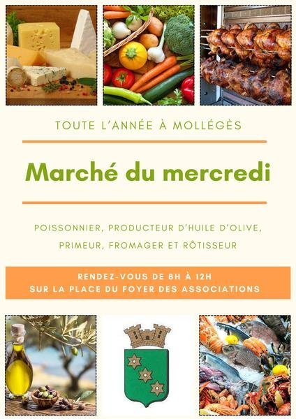 Poissonnier, producteur d'huile d'olive, primeur, fromager et rôtisseur vous attendent, sur la place du Foyer des associations.