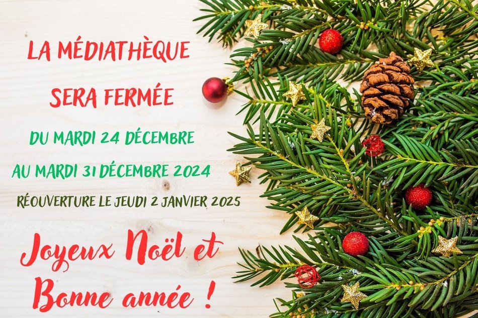 La médiathèque sera fermée du mardi 24 décembre au mardi 31 décembre 2024