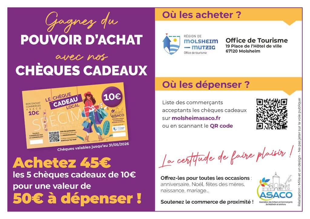Découvrez la liste des enseignes participantes ici : https://molsheimasaco.fr/participants-cheque-cadeau/
