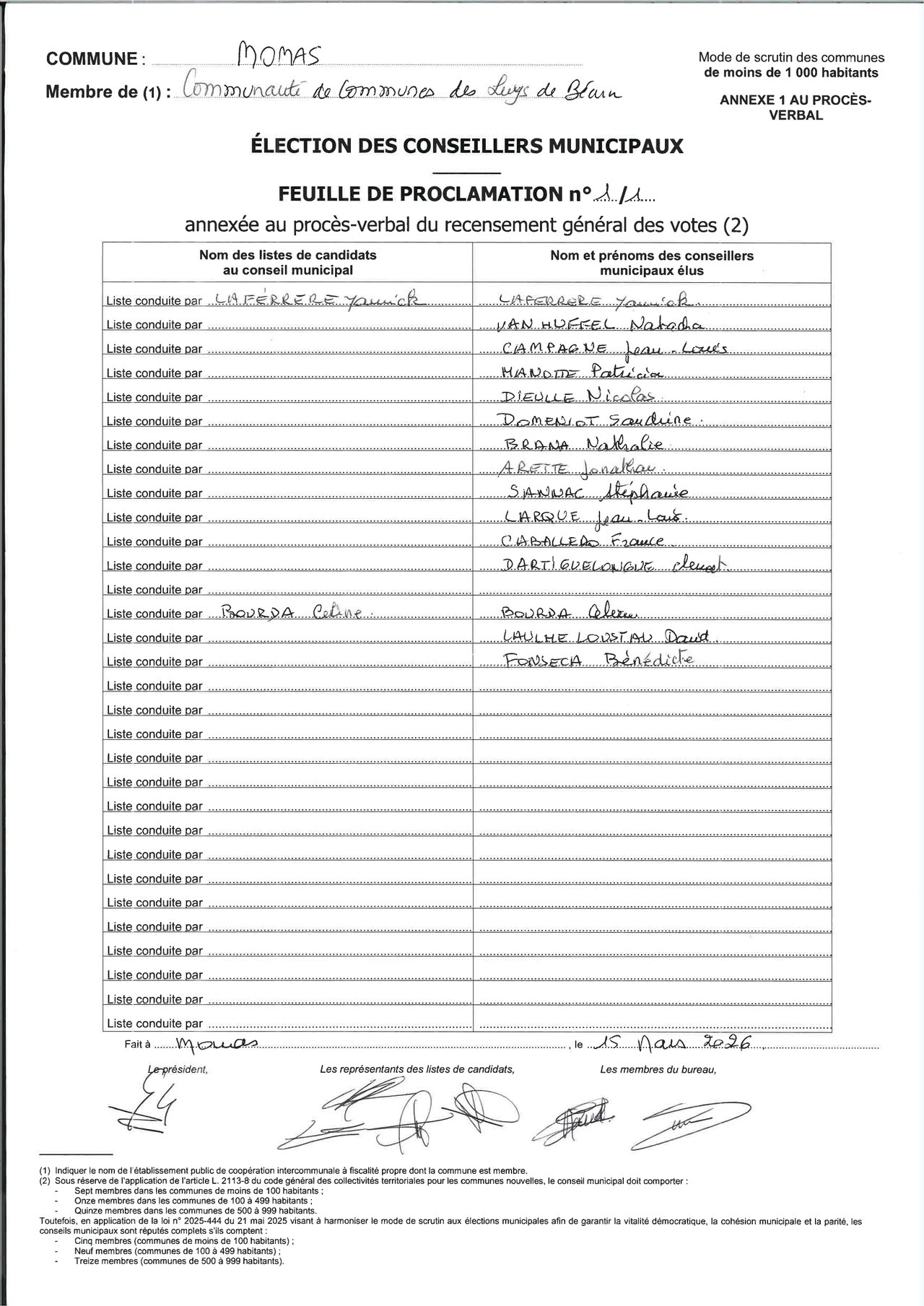 RÉSULTATS DES ELECTIONS MUNICIPALES DU 15 MARS 2026