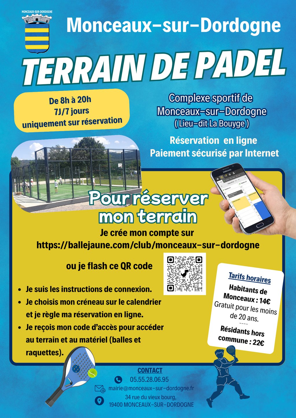 La réservation du terrain de padel de Monceaux-sur-Dordogne est désormais possible en ligne sur le site https:/ballejaune.com/club/monceaux-sur-dordogne