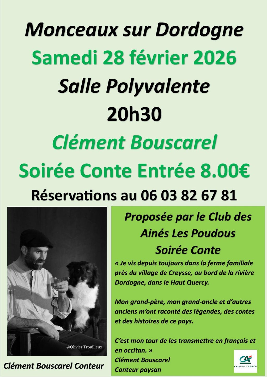 Soirée proposée par le club des aines LES POUDOUS avec CLÉMENT BOUSCAREL