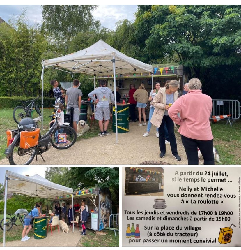 Michelle et Nelly sont au rendez-vous pour vous accueillir à la roulotte ! Rien ne les arrête, ni les averses, ni les caprices du ciel ! Elles ont tout prévu pour que vous passiez un moment convivial et chaleureux.