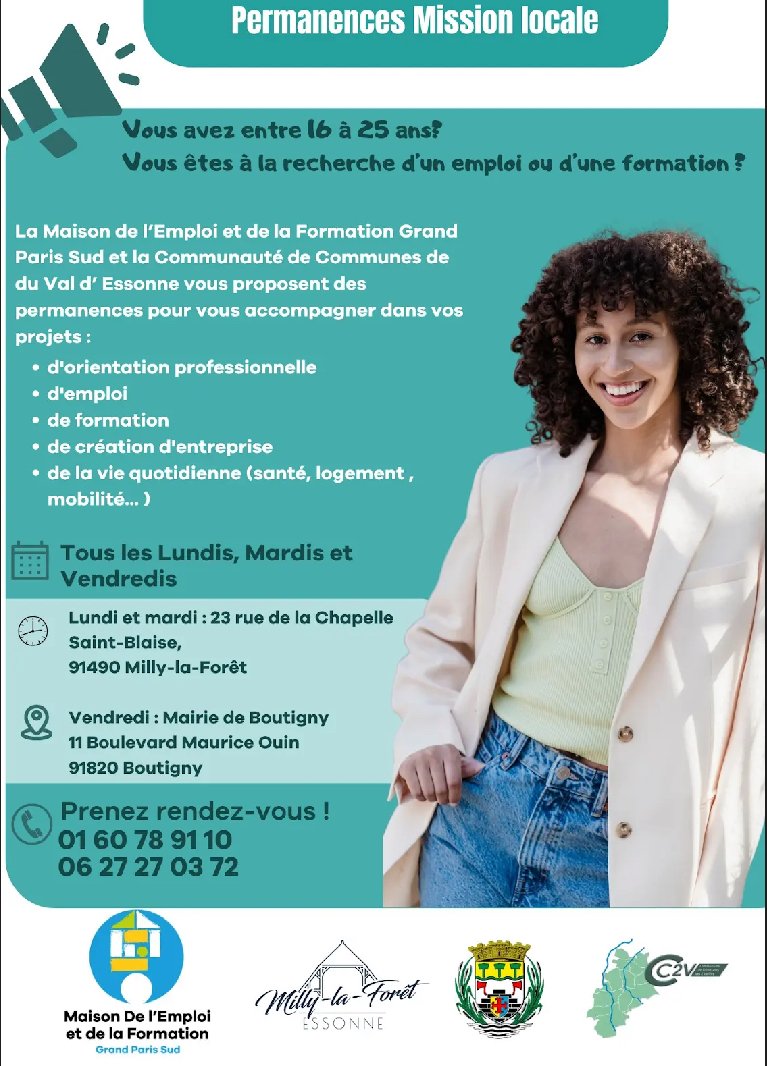 La Maison de l’Emploi et de la Formation Grand Paris Sud assure des permanences rĂ©gulières sur le territoire de la CommunautĂ© de Communes des 2 VallĂ©es.Â
