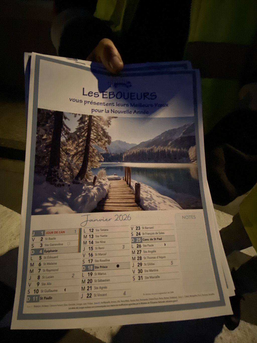 Comme chaque année, nos éboueurs passeront prochainement dans le village pour vous proposer leur calendrier 2026 en échange d’étrennes.