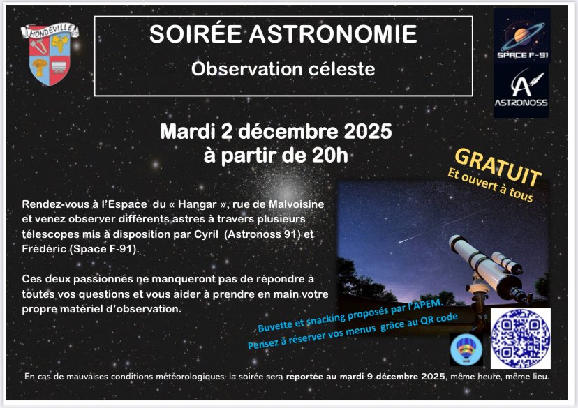 Venez participer à la soirée astronomie proposée en partenariat avec l'école, l'APEM, Cyril et Frédéric !