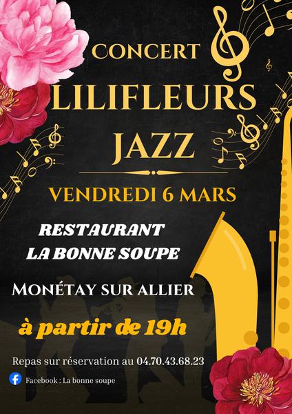Une soirée jazz envoûtante avec Lilifleurs Jazz ! Venez savourer musique et bonne cuisine dans une ambiance chaleureuse. Réservez vite votre table !