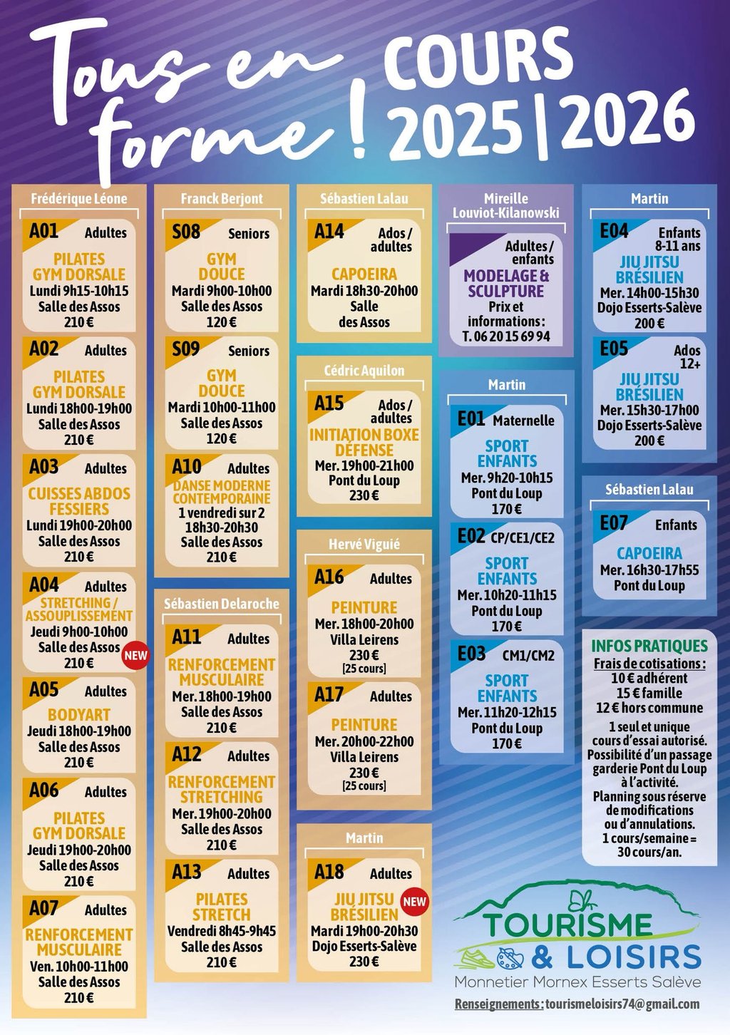 Tourisme et Loisirs, vous propose un nouveau programme de remise en forme pour l'année 2025-2026.