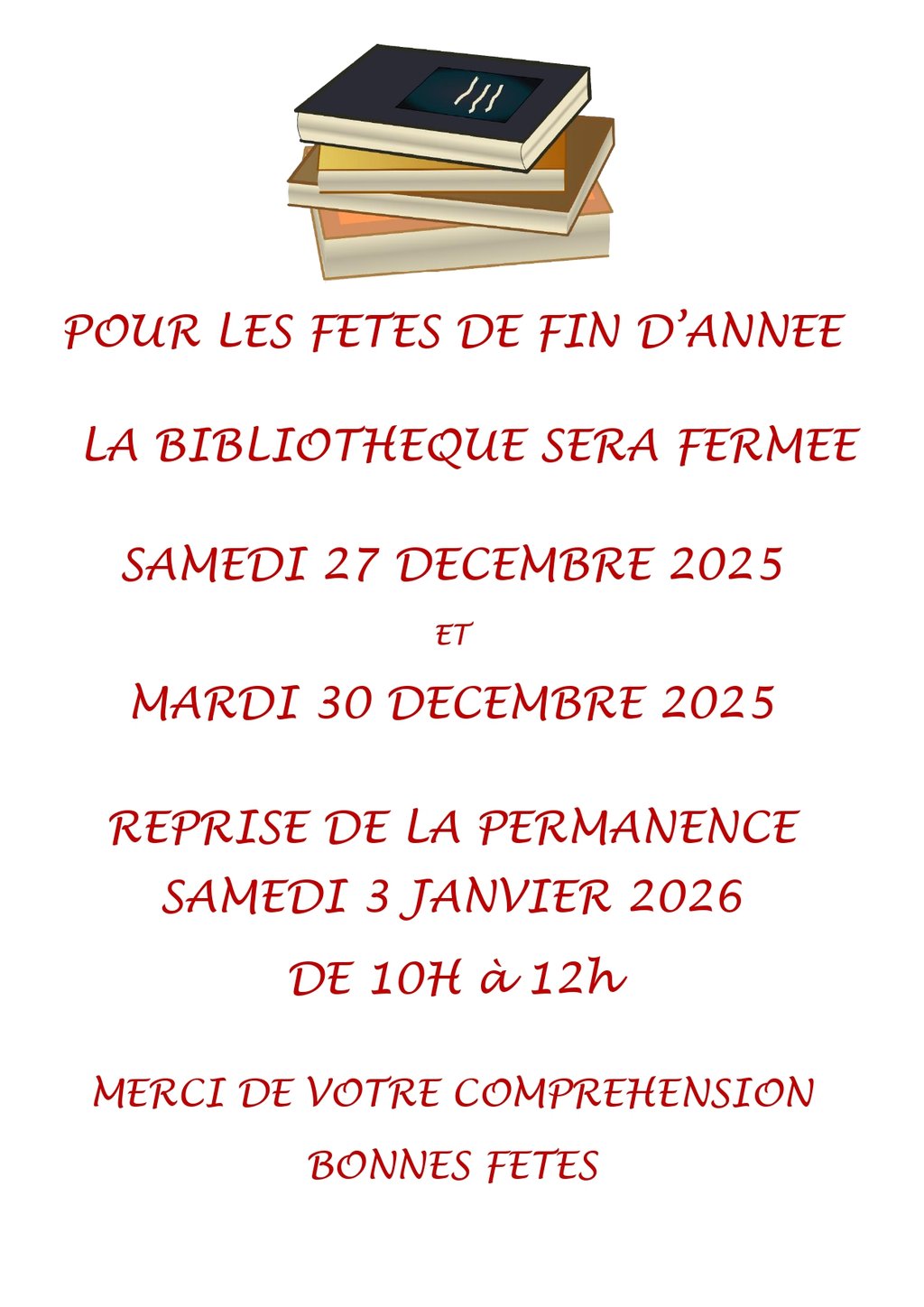 FERMETURE BIBLIOTHÈQUE 📚