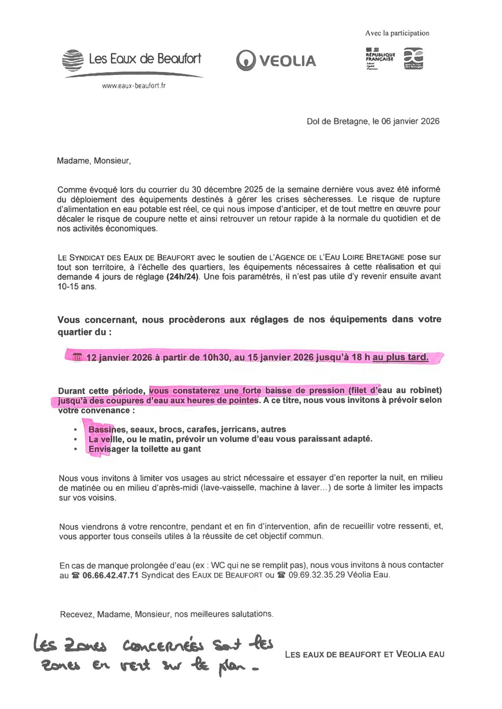 En raison de cette coupure d’eau prévue, nous vous remercions de bien vouloir prendre les dispositions nécessaires afin d’anticiper cette interruption.