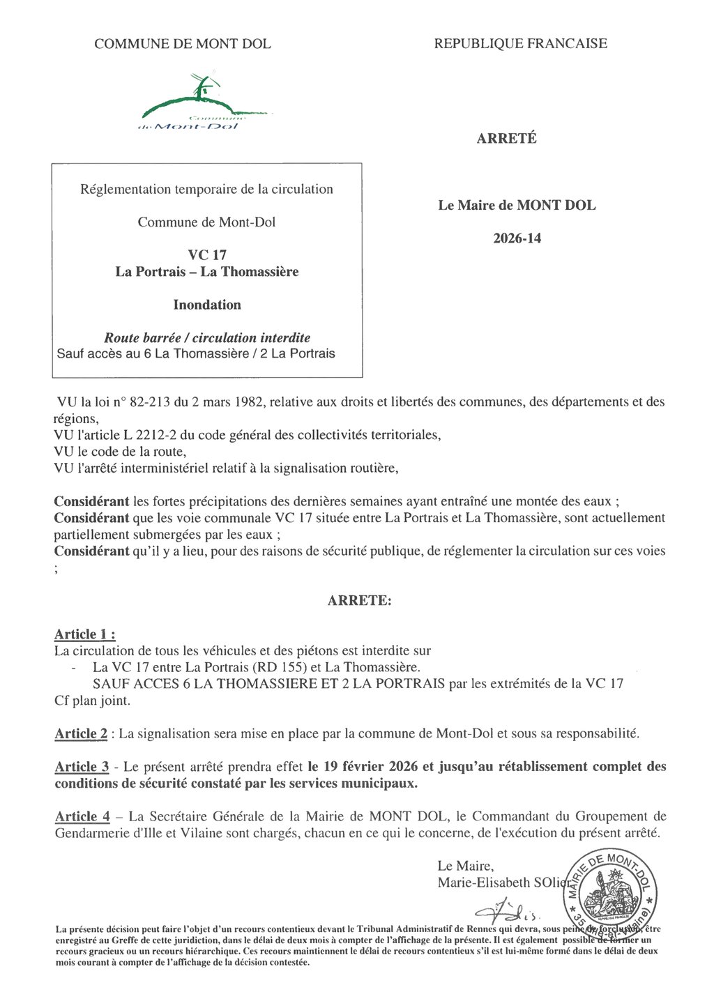Arrêté municipal : Route barrée / circulation interdite