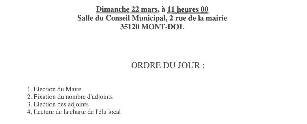 Invitation au Conseil municipal du dimanche 22 mars à 11h