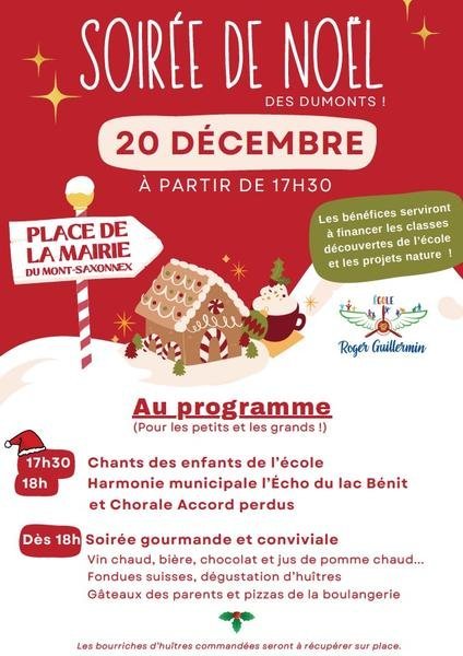 Venez vivre un moment féérique et solidaire à la Grande Soirée de Noël des Dumonts sur la Place de la Mairie !
