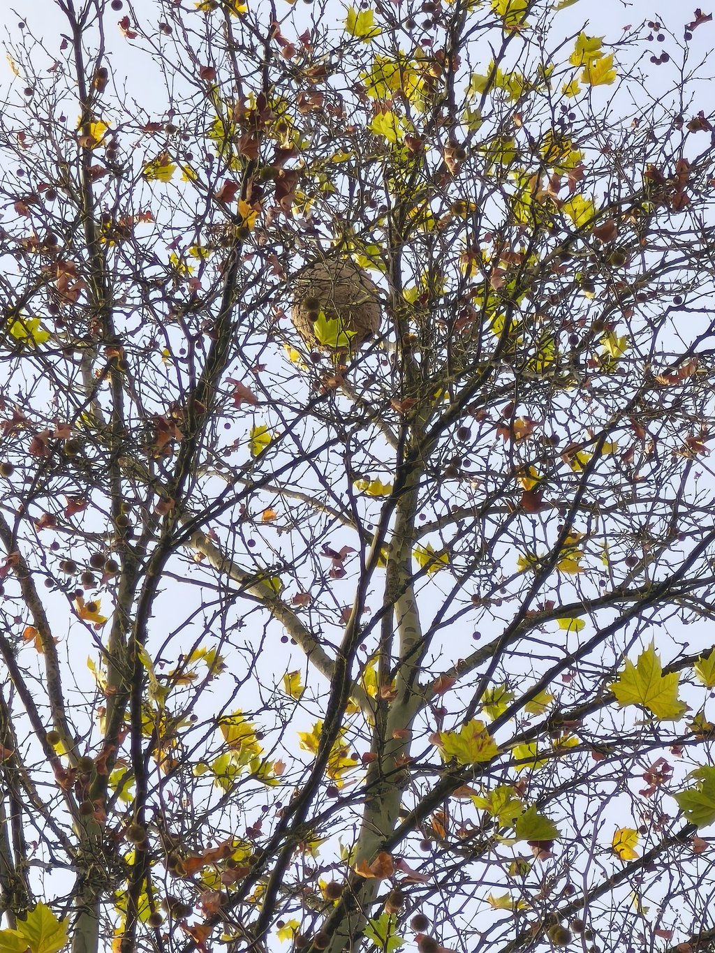 La taille du nid, situé à 20 mètres de haut, est estimée à 60/80 cm avec environ 10 000 individus. Le traitement agit toujours sur le nid qui restera en place.