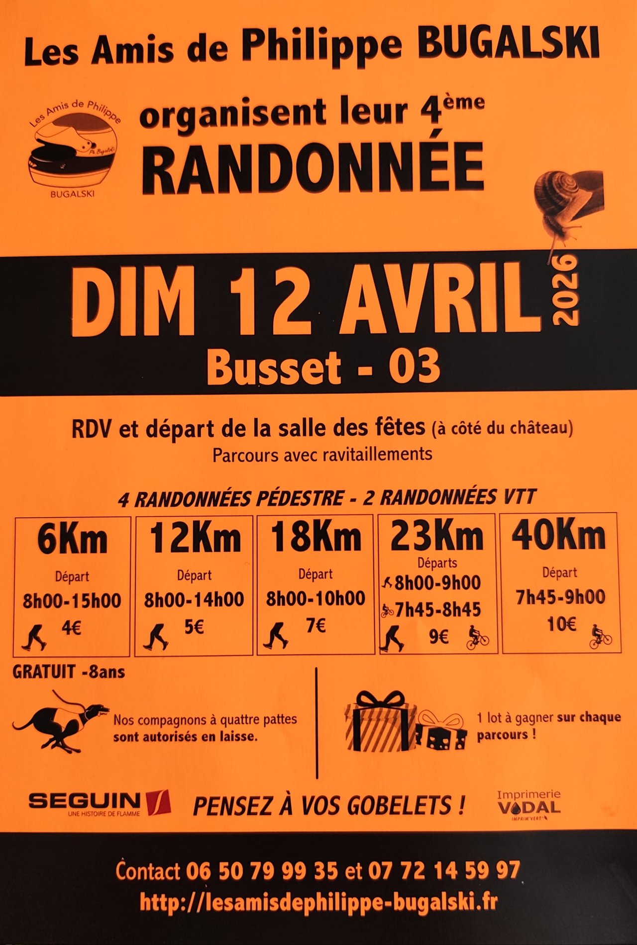 À vos baskets, bâtons de marche et VTT 🚶♀️🏃🚵♀️👞. On vous donne RDV le dimanche 12 avril prochain pour notre 4ème randonnée pédestre et VTT à la salle des fêtes de BUSSET. Pensez à vos gobelets 🥛 merci.