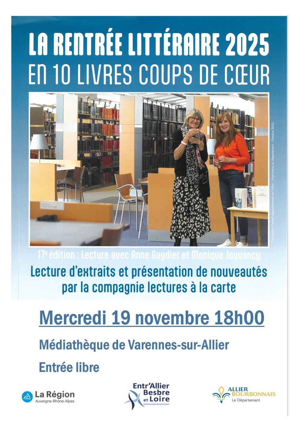 đ LA MĂDIATHĂQUE DE VARENNES-SUR-ALLIER ACCUEILLE LA COMPAGNIE "LECTURES Ă LA CARTE"