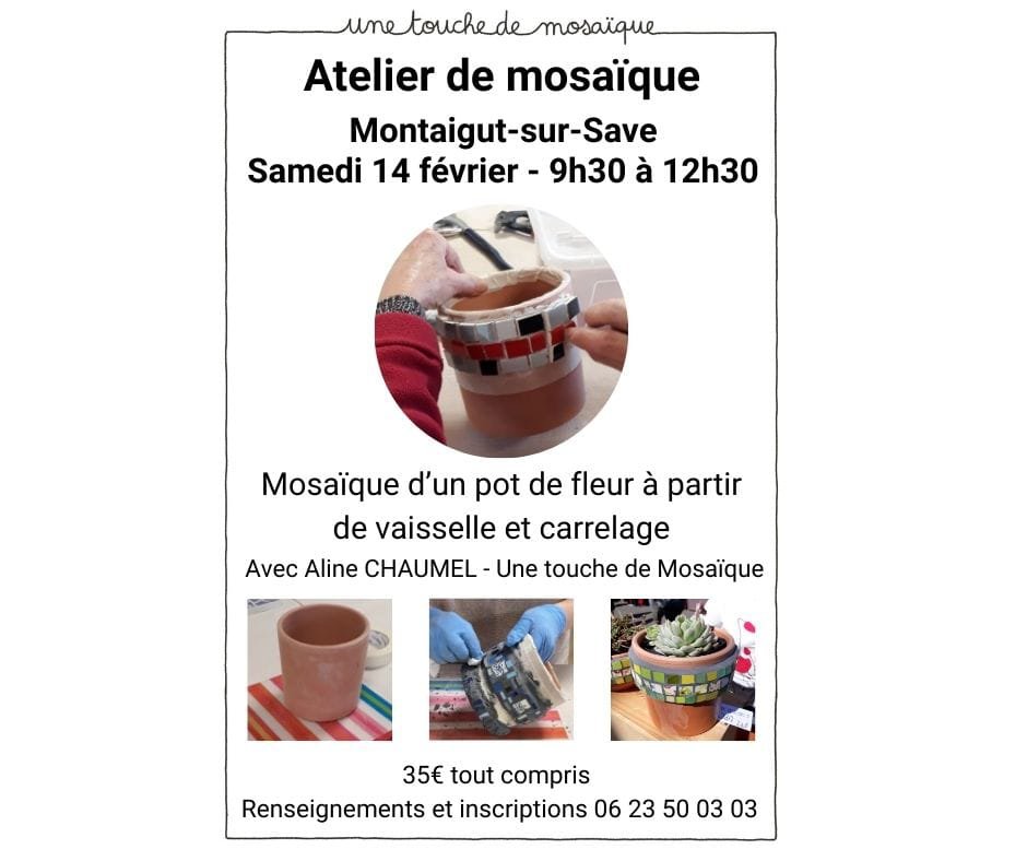 Stage de mosaïque : mosaïque d'un pot de fleur à partir de vaisselle et de carrelage