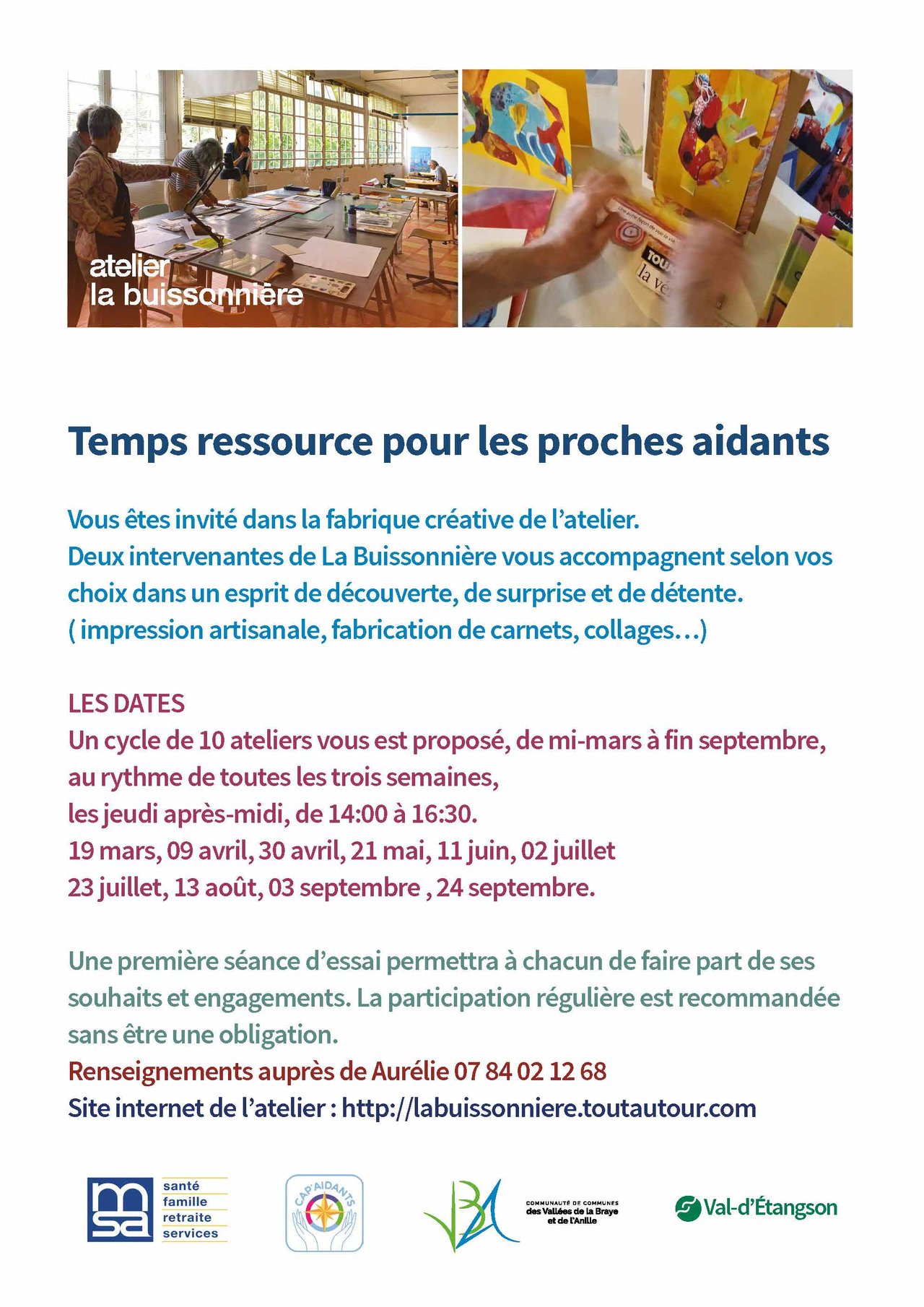 Inscriptions et renseignements auprès d'Aurélie : 07 84 02 12 68