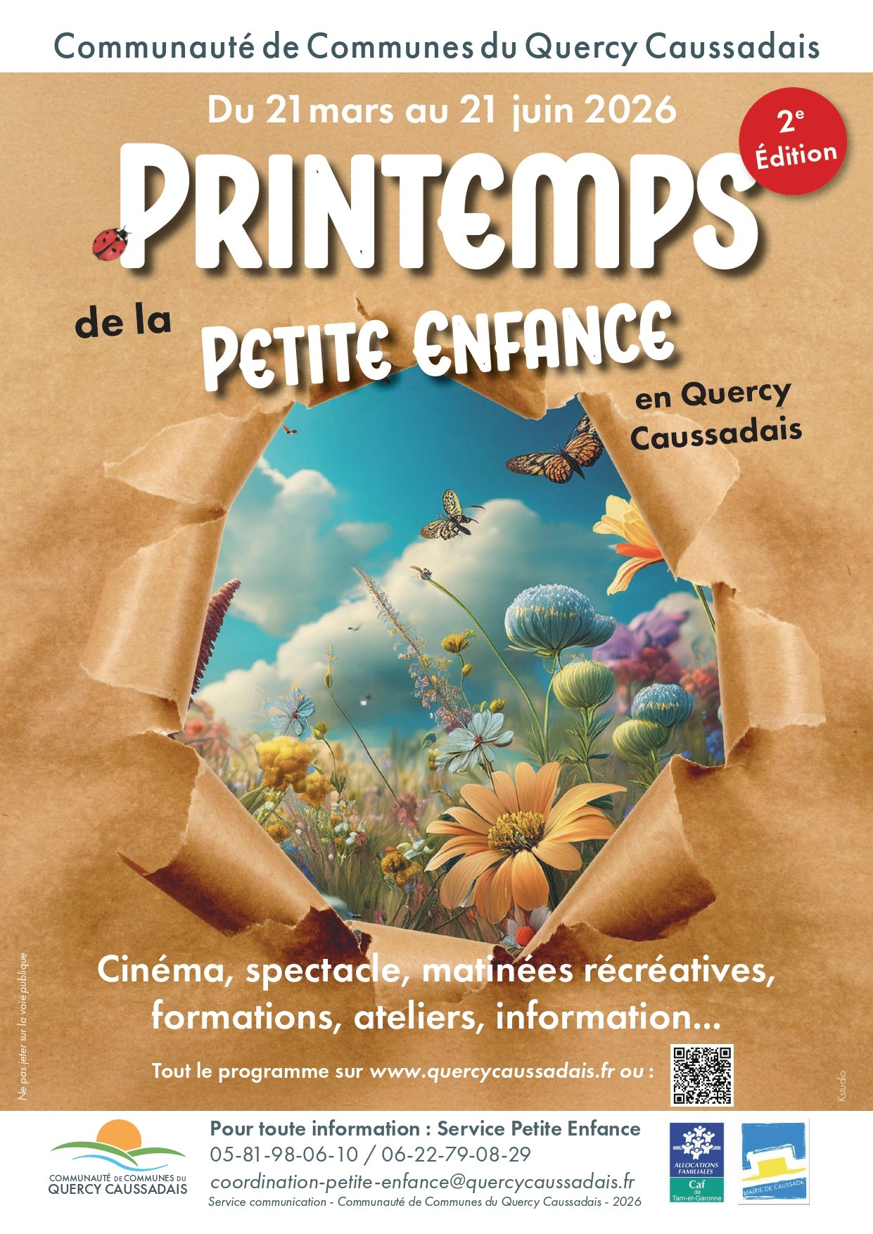 Vous trouverez en pièce jointe le programme du printemps de la petite enfance organisé dans le Quercy Caussadais.