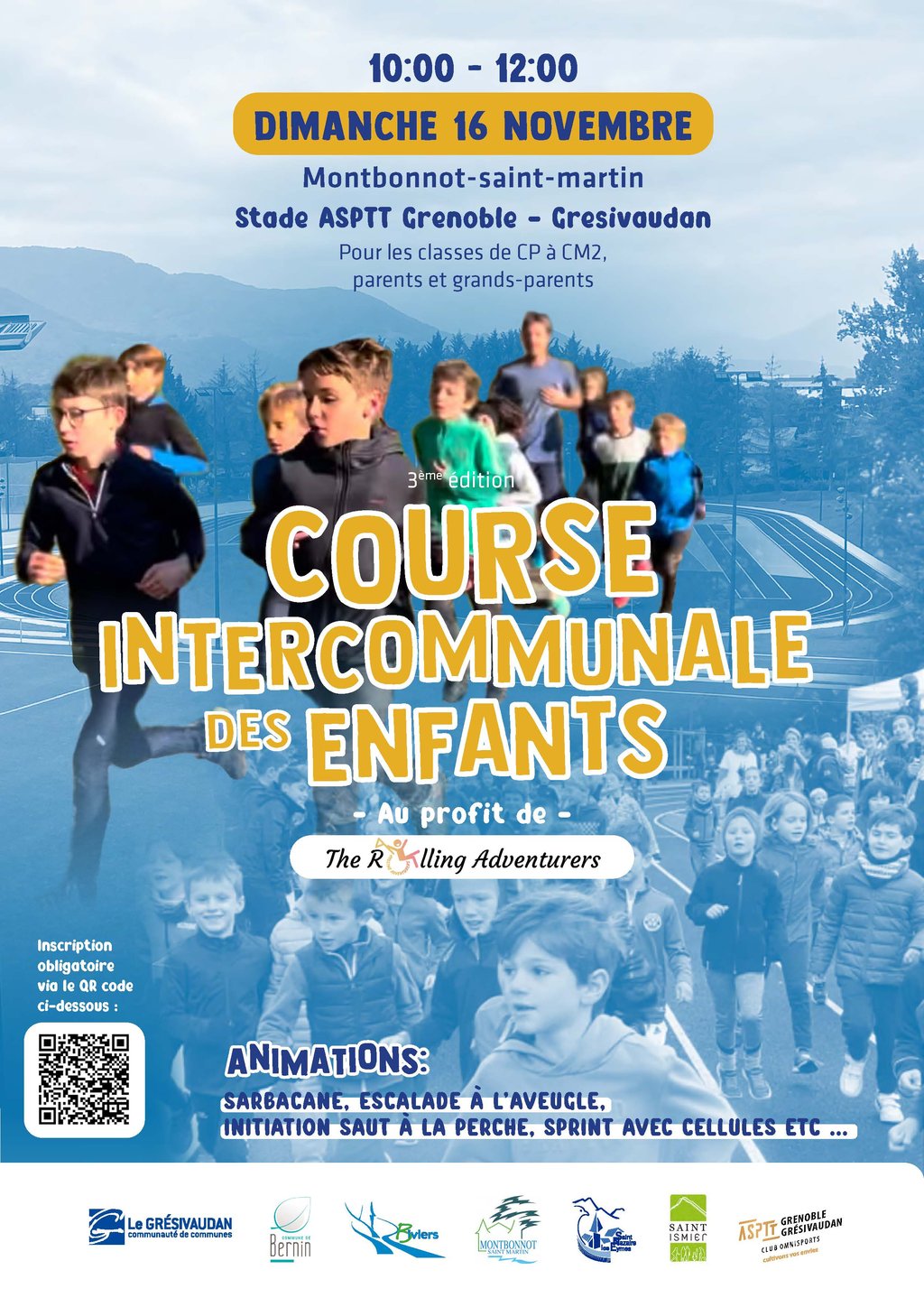 Rendez-vous au stade de l'ASPTT Grenoble-Grésivaudan le 16 novembre, de 10h à 12h, pour la nouvelle course intercommunale des enfants, en faveur de l'association The Rolling Adventurers.