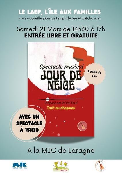Le LAEP, L'Île aux famille vous accueille pour un temps de jeu et d'échanges de 14h30 à 17h, avec un spectacle à 15h30.
