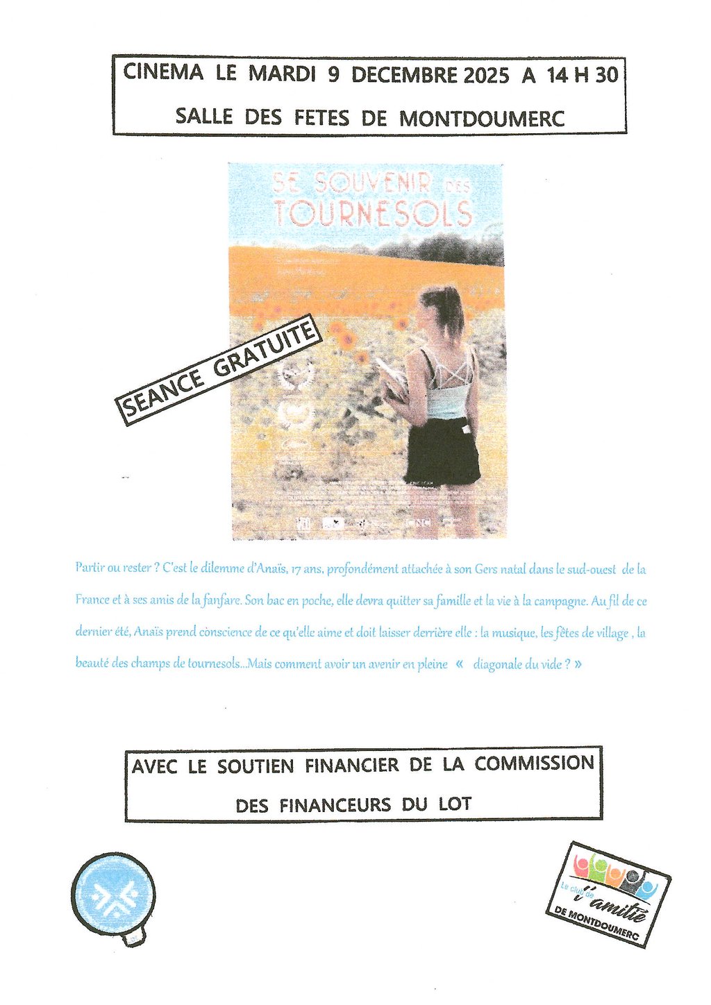 Avec le soutien financier de la commission des financeurs du Lot, la séance sera gratuite.