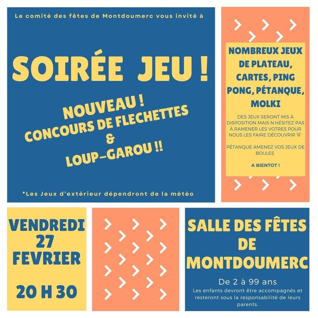 Le comité d'animation de Montdoumerc vous invite à une soirée jeux.