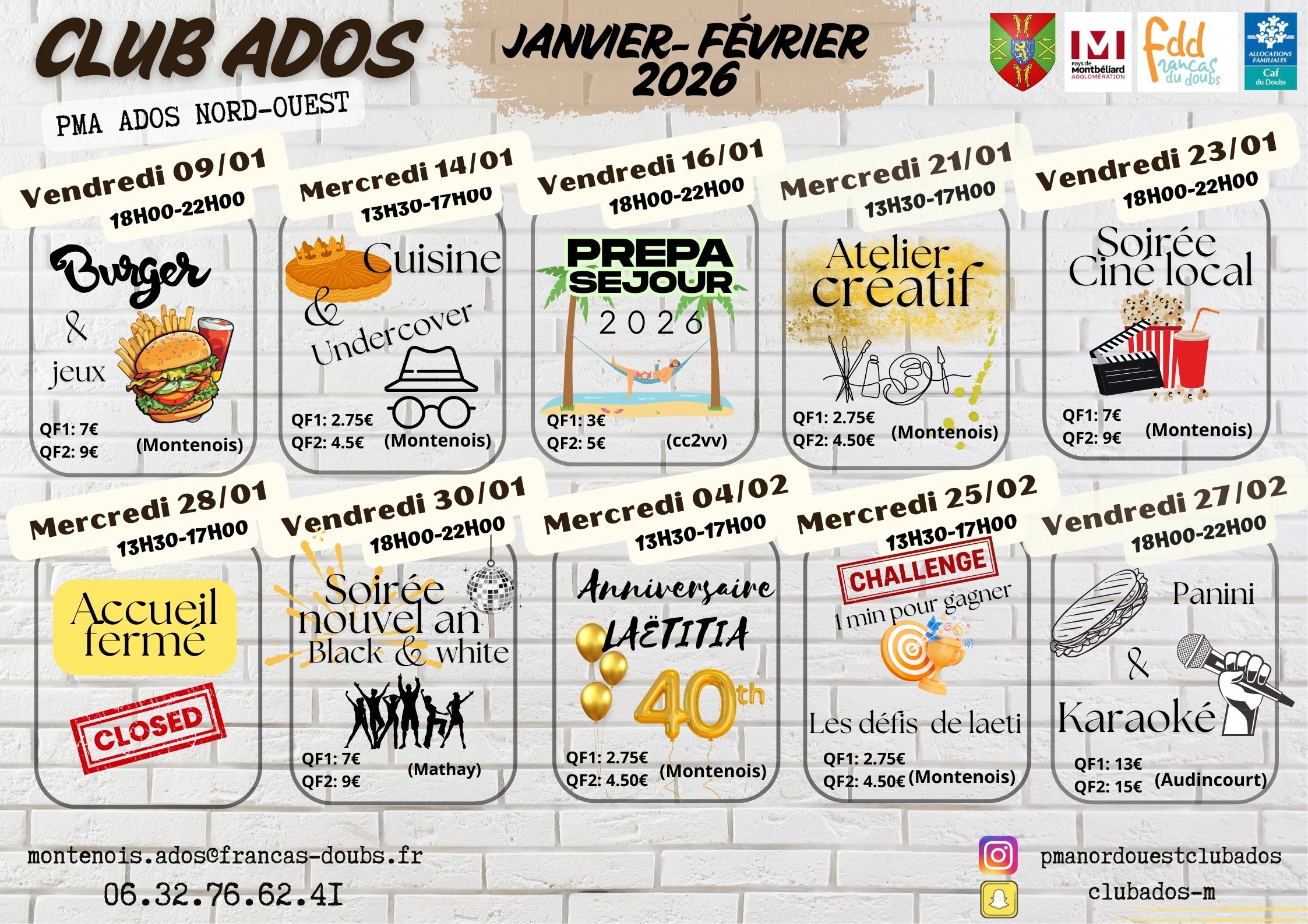 Les Francas vous présentent leur programme d’activités pour les mois de janvier et février 2026, spécialement conçu pour les jeunes.