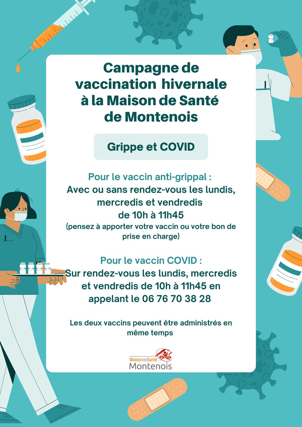 Dès le 14 octobre, une permanence de vaccination contre la grippe et/ou la COVID a lieu au cabinet des infirmières de la Maison de Santé de Montenois :