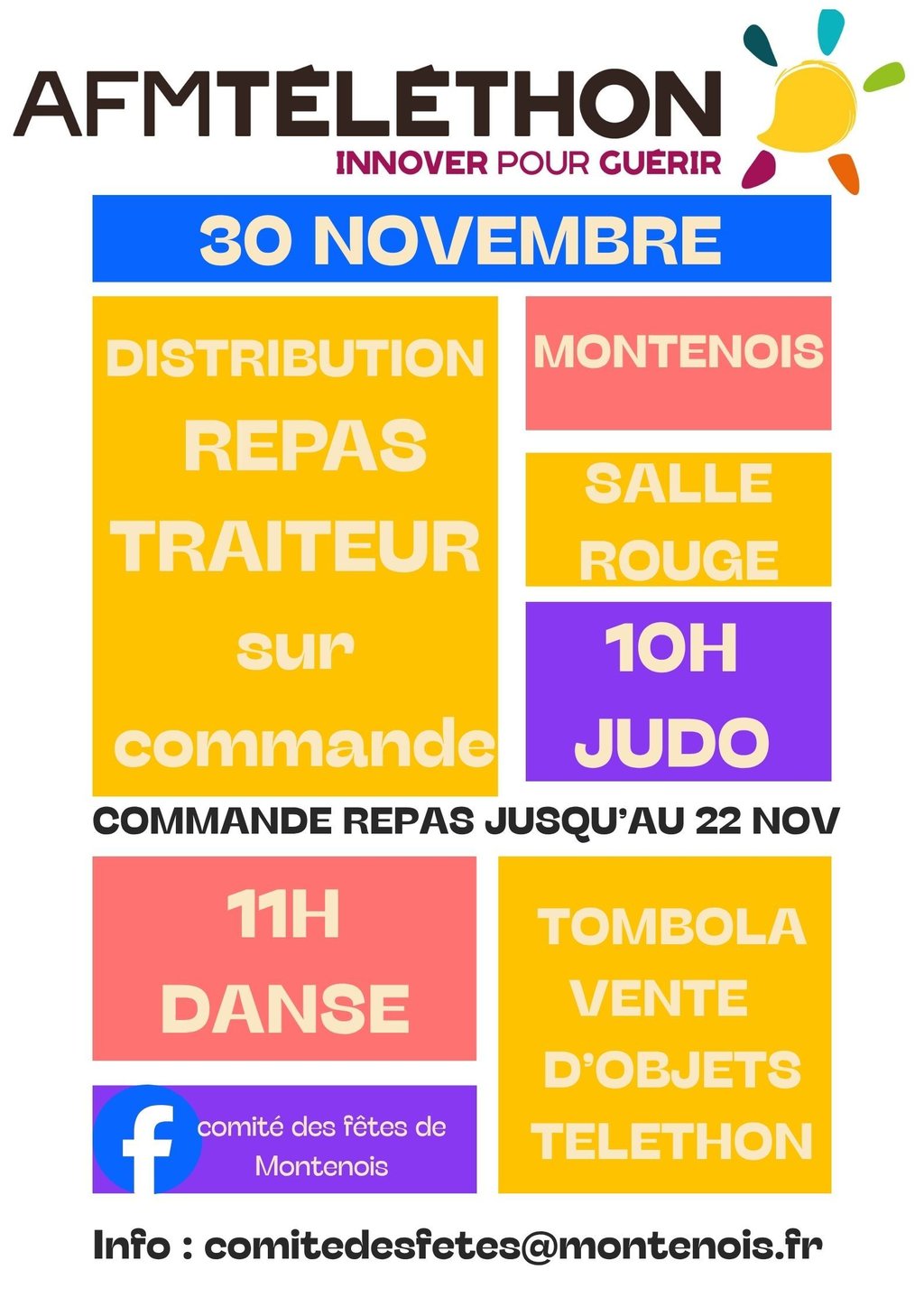Repas commandé à retirer le 30 novembre à la maison rouge entre 9h et 12h