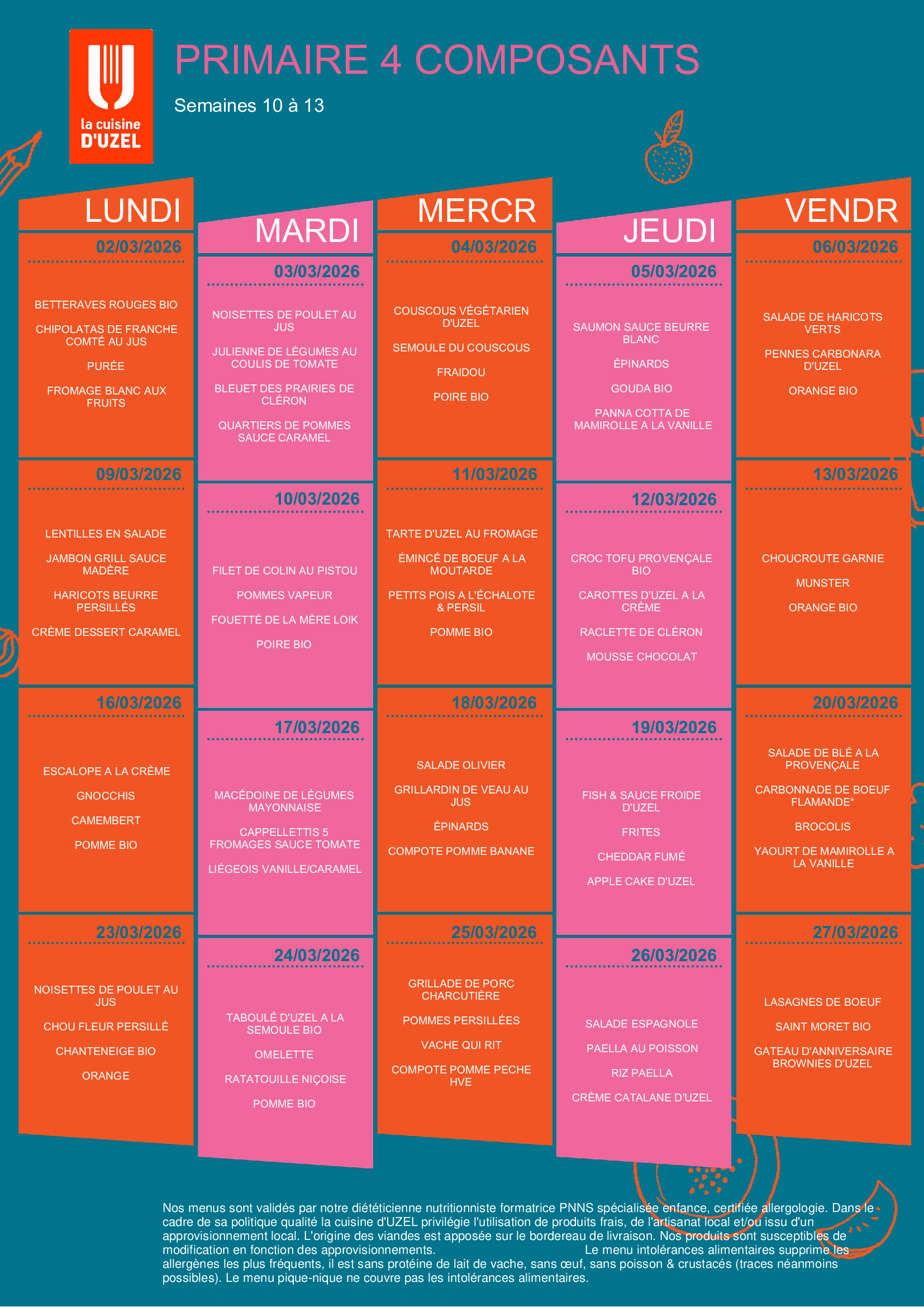Menus mars 2026