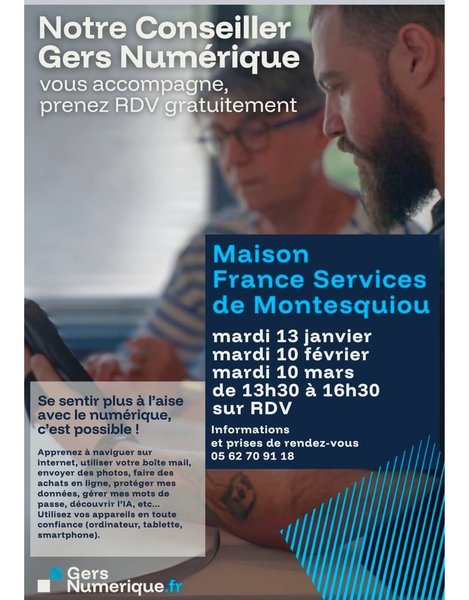 Sur rdv un conseiller numérique vous accompagne gratuitement dans vos démarches, dans la découverte des outils informatiques, vos démarches en ligne...