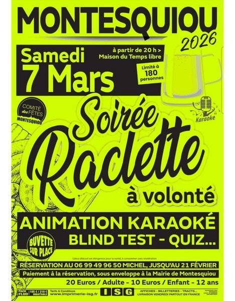 À partir de 20h raclette à volonté avec l'animation karaoké, blind test, quizz...