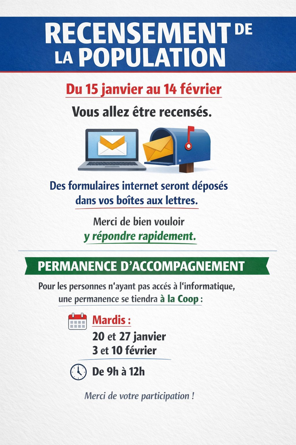 PERMANENCES POUR LE RECENSEMENT DE LA...