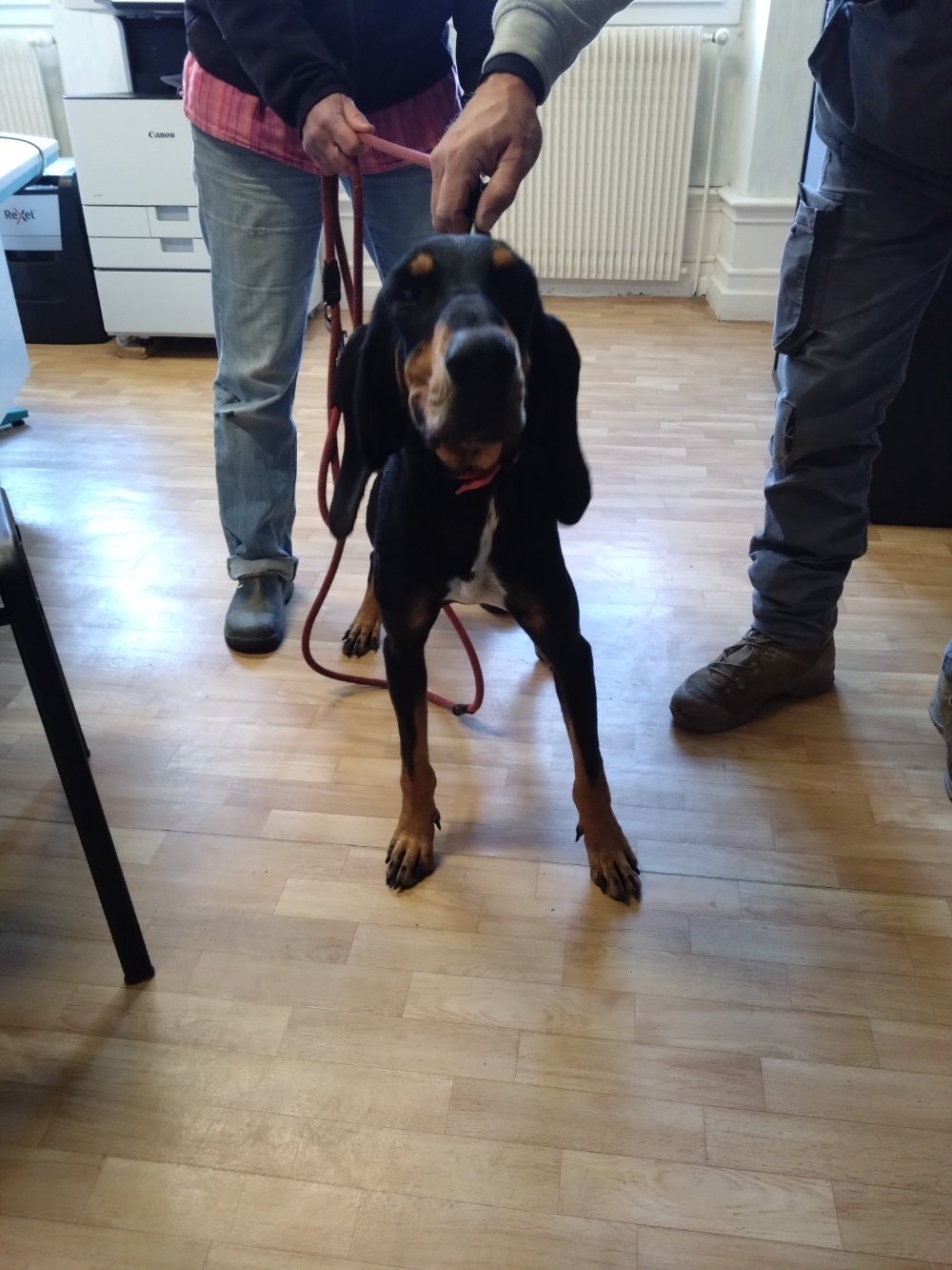 Une jeune chienne de race Bruno du Jura a été retrouvée lundi 17 novembre 2025 sur la Place de la République à Xaintrailles.