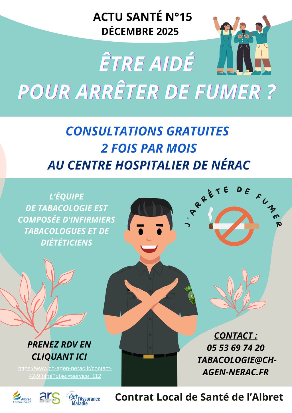 Dans le cadre du Contrat Local de Santé, voici l'Actu Santé du mois de décembre 2025 : Être aidé pour arrêter de fumer.