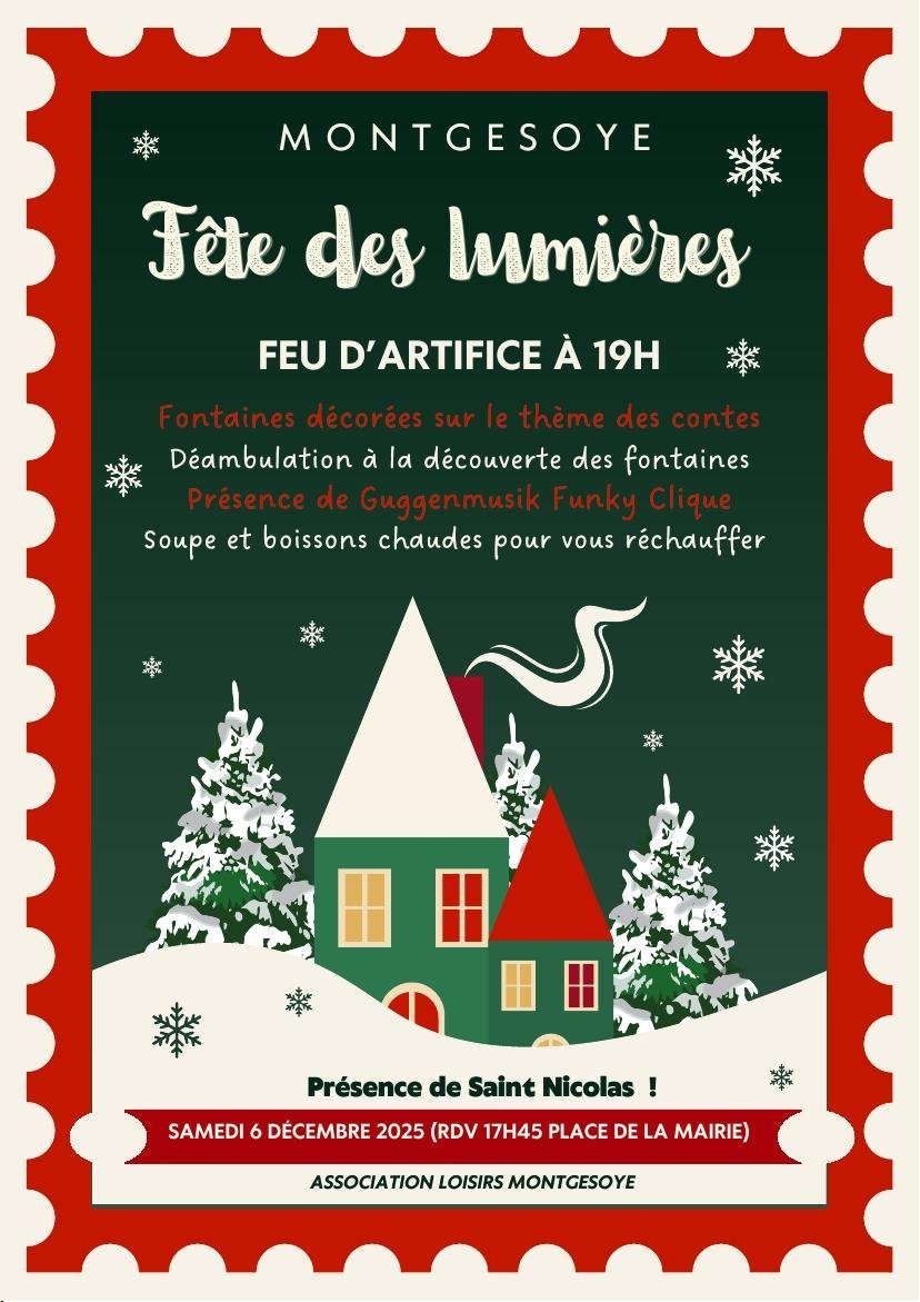 Au programme: Fontaines décorées sur le thème des contes, déambulation pour les découvrir, présence de la Guggenmusik Funky Clique. Soupe et boissons chaudes sur place et présence de Saint Nicolas ! Feu d'artifice à 19h ! Rdv à 17h45 !