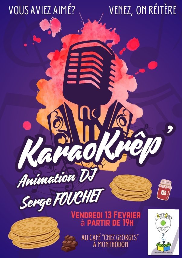 Le cafĂ© associatif Chez Georges vous invite Ă une nouvelle soirĂ©e KaraokrĂȘpâ, pour chanter ensemble, rire, se retrouver et partager un bon moment au cĆur du village â€ïž