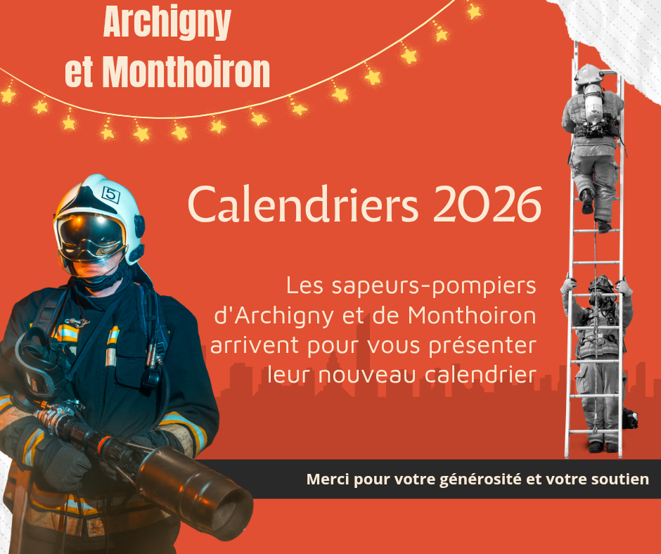Les sapeurs-pompiers d'Archigny et de Monthoiron arrivent pour vous présenter leur calendrier.