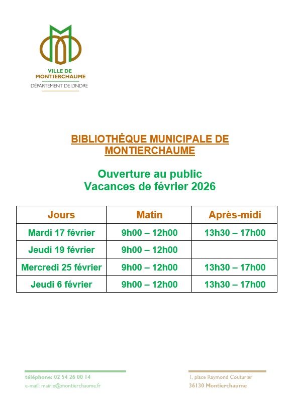 Horaires de la bibliothèque municipale pendant les vacances de février 2026