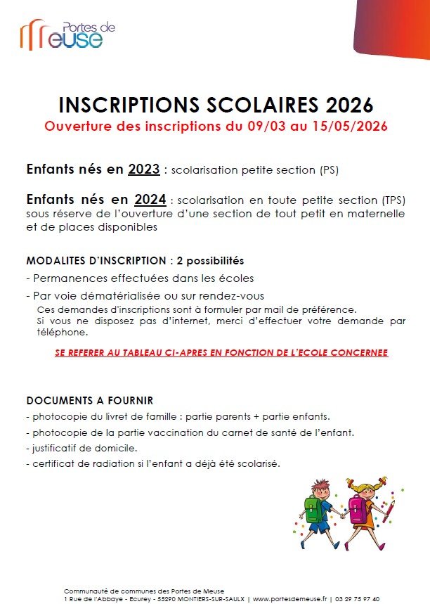Retrouver l'ensemble de ces infos sur : https://www.portesdemeuse.fr/etablissements-scolaires/