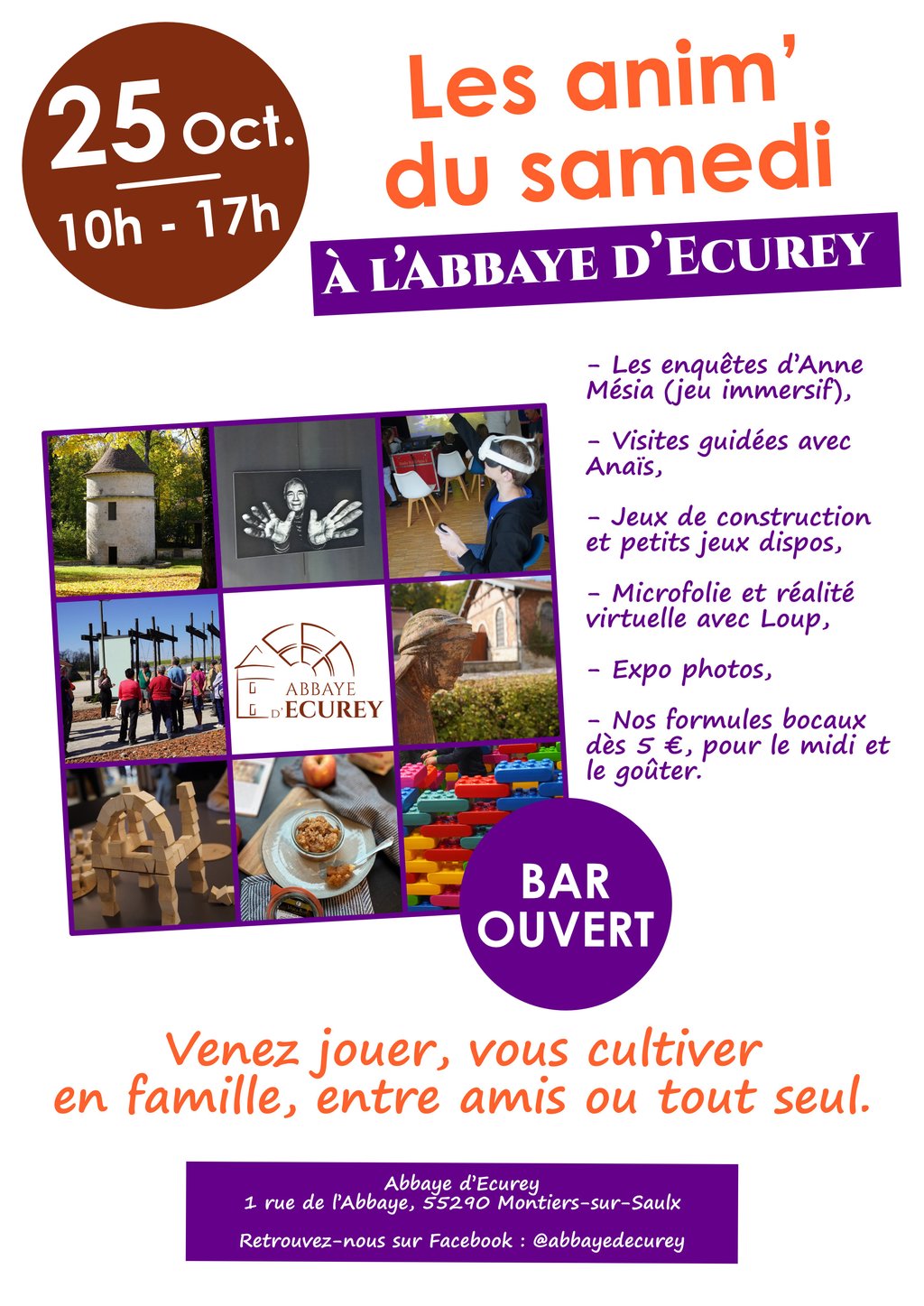 👋Le 25 octobre de 10h à 17h, ce sont "les Anim' du samedi" à l'Abbaye d'Ecurey. En accès libre, venez découvrir le site de l'Abbaye. Les couleurs d'automne donnent du charme au lieu.