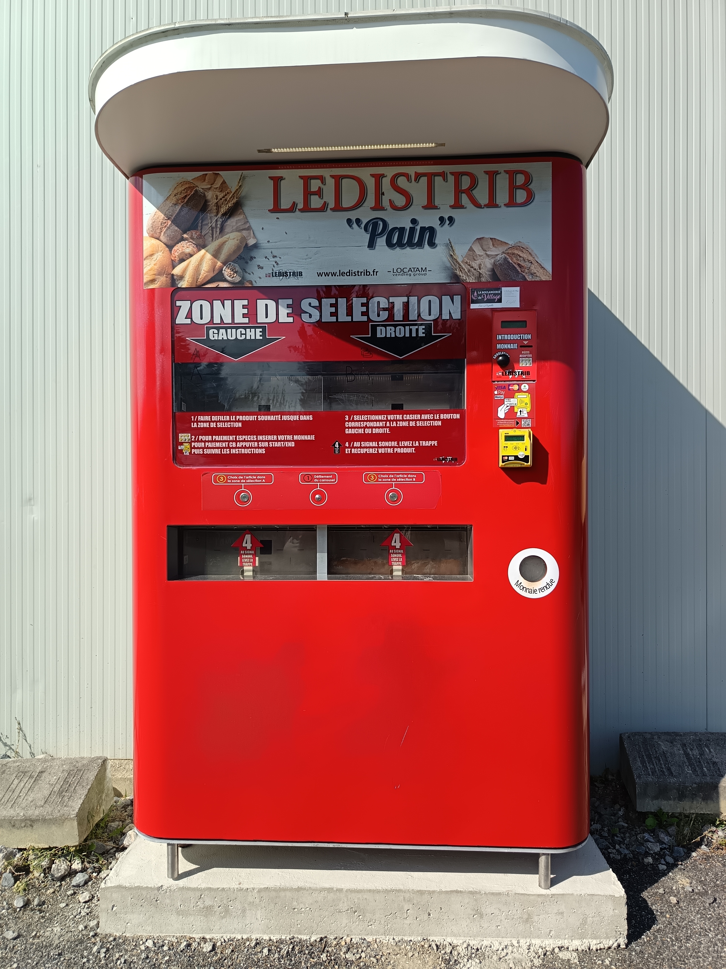 Depuis ce week-end, il y a un distributeur de pain, installé à ANGOS contre la pizzéria.